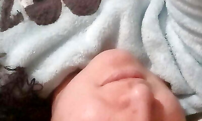 spuckt auf ihre rasierte muschi, während sie eine fickmaschine benutzt